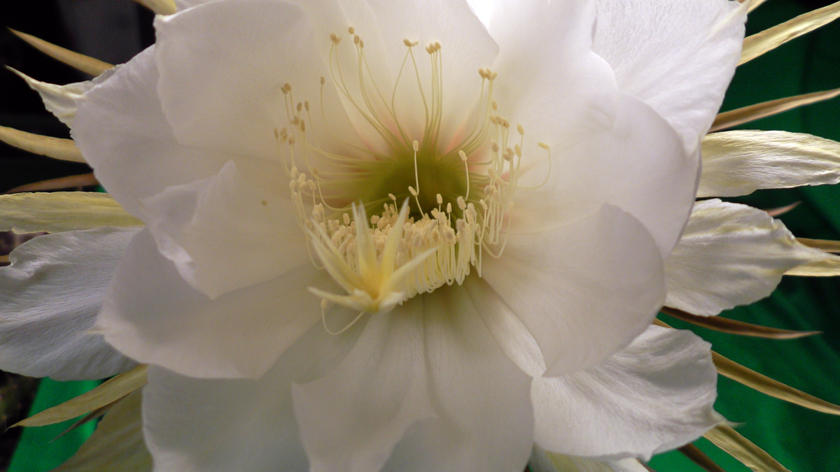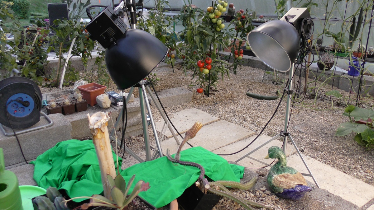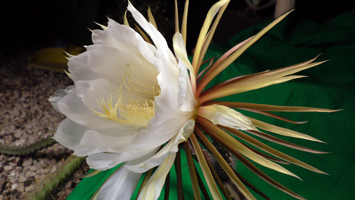Die "Königin" - was von ihr übrig blieb - sie erblüht! Filmkamera und Beleuchtung  stehen bereit ihr nächtliches Wunder in Zeitraffer zu ergründen