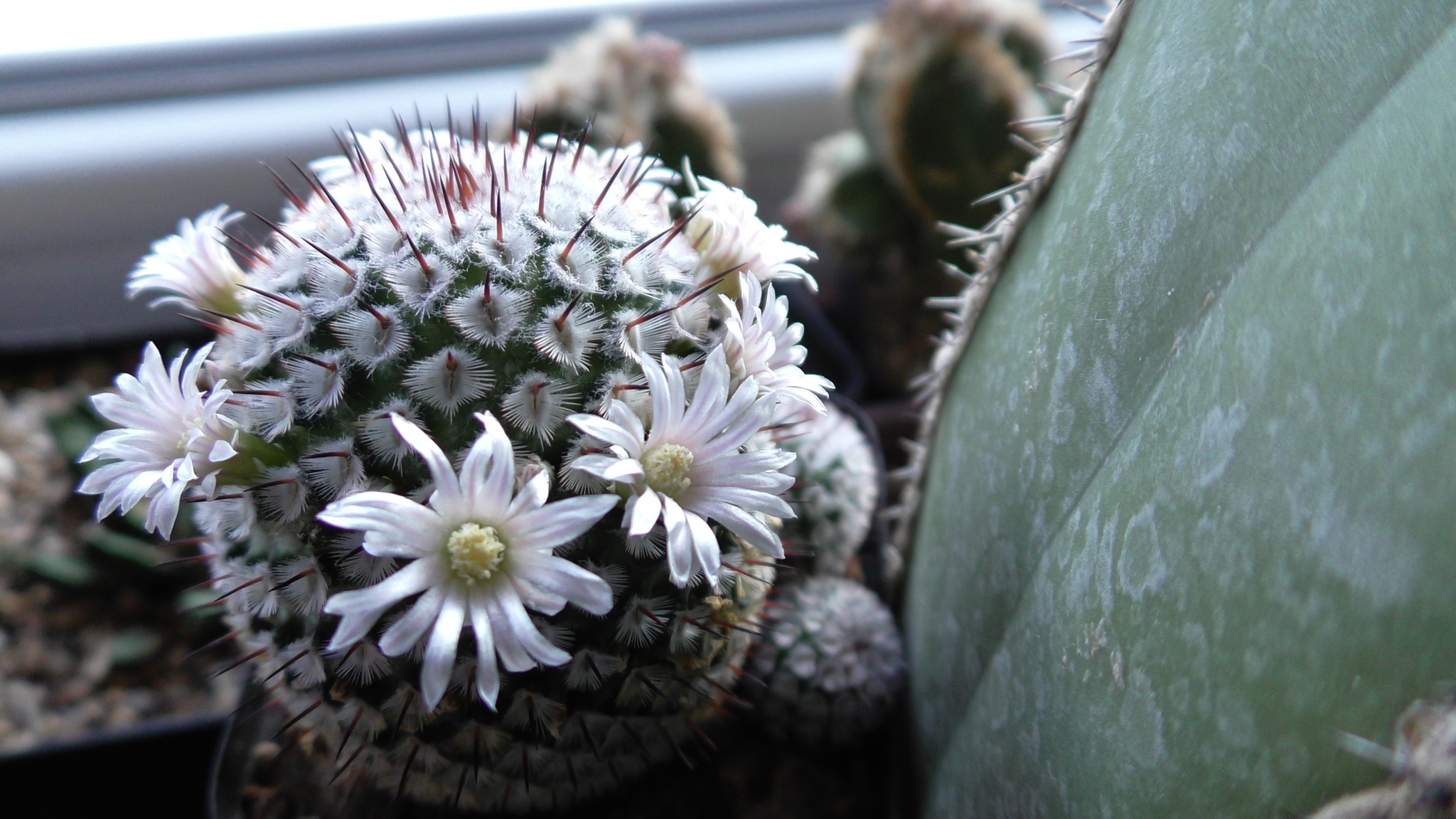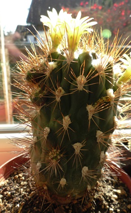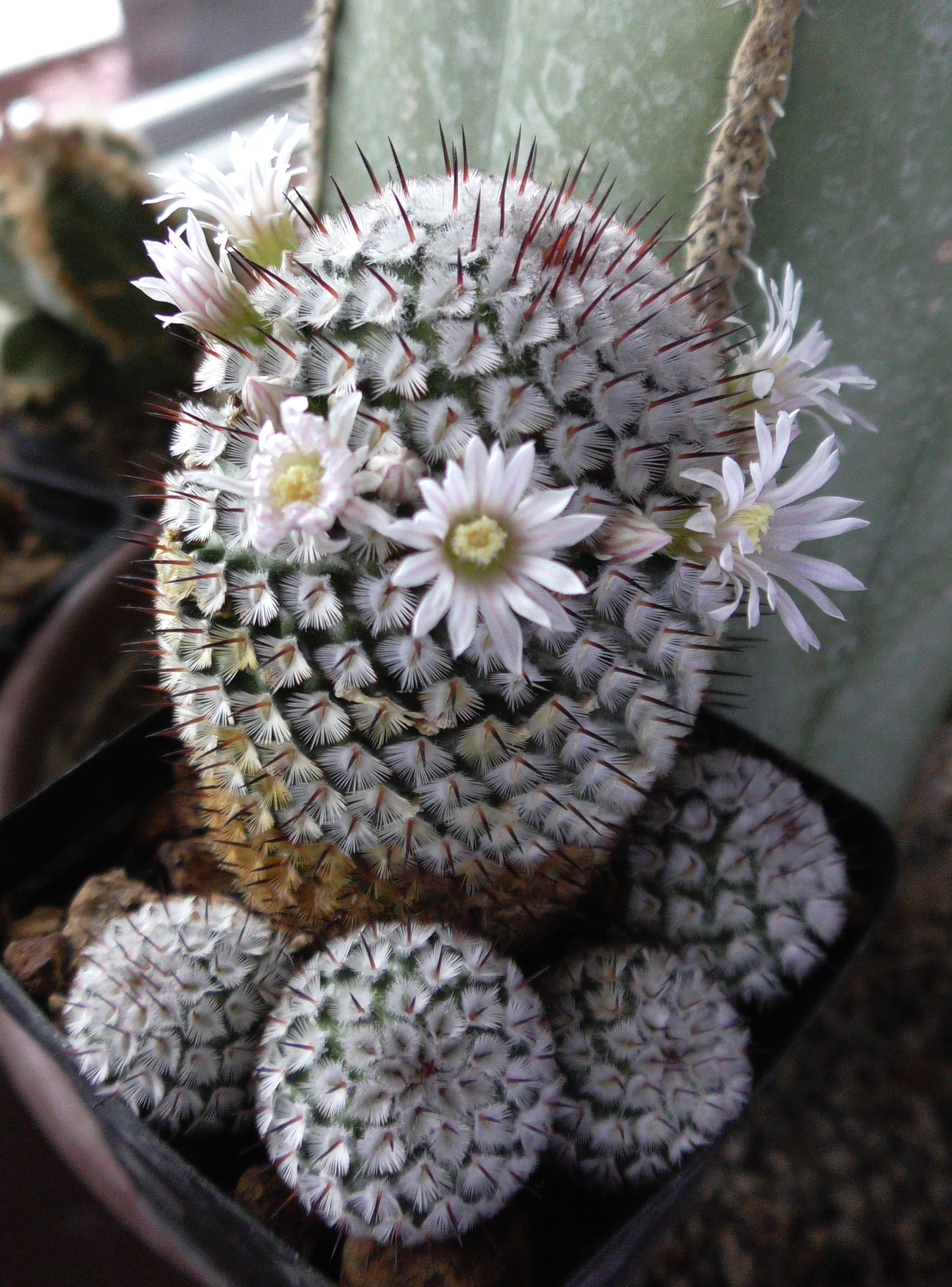 Auch die hakendornenlose Mammillaria perezdelarosa ssp andersoniana hat sich zur Weihnachtsblüte entschlossen