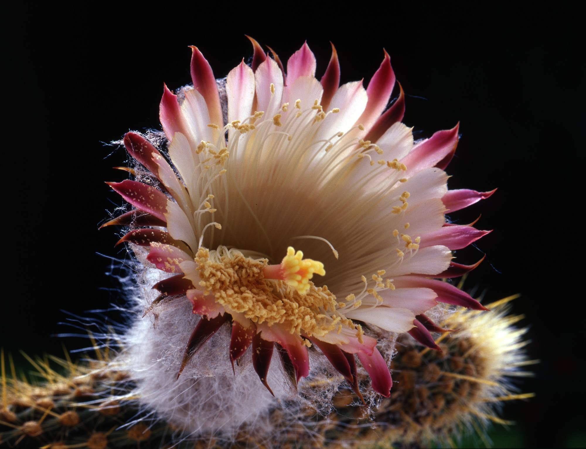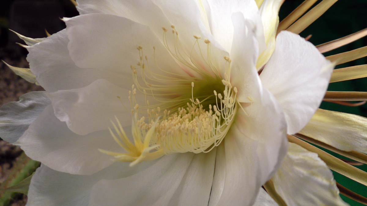 Seltener als die "Königin der Nacht" in den Samm-lungen anzutreffen ist Weberbauerocereus longicomus. Als 3m hoher "Baum" zeigte er überraschend seine fantastischen Blüten mit 12cm Durchmesser.