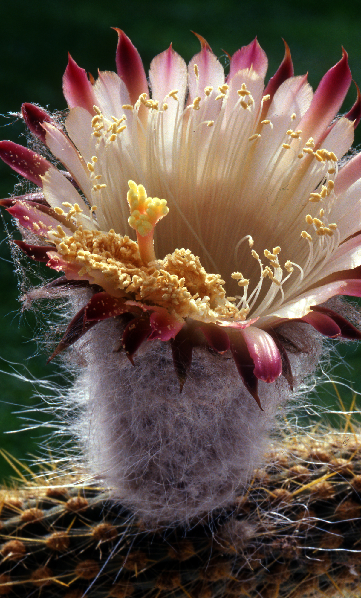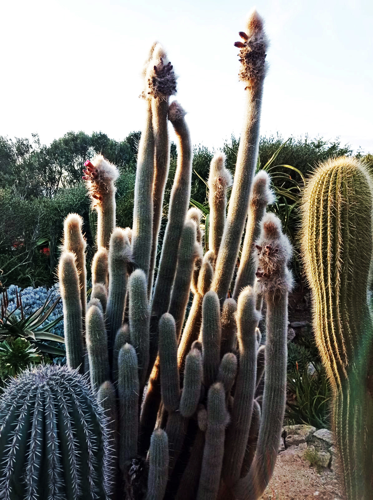 Er fühlt sich sauwohl auf Sardinien, der Thrixantocereus senilis! Seit mehreren Jahren ist er nun auf der Insel im Freien ausgepflanzt, hat er sich schnell eingewöhnt, neue Sprosse gebildet und die alten verlängert, an jenen Cephalium gebildet und viele Blüten. Das hat er im Gewächshaus nie geschafft!