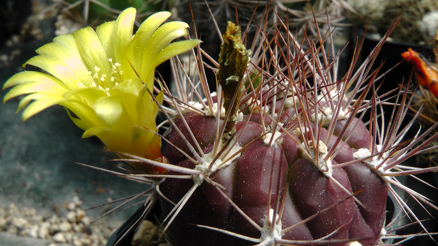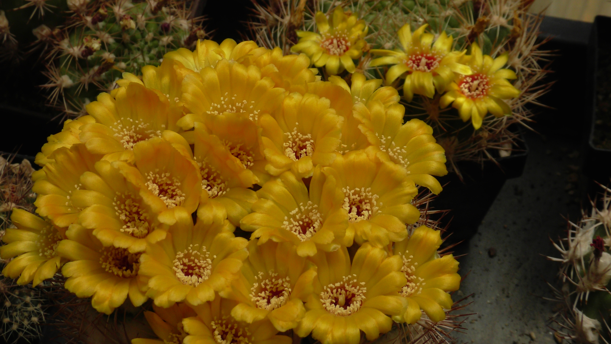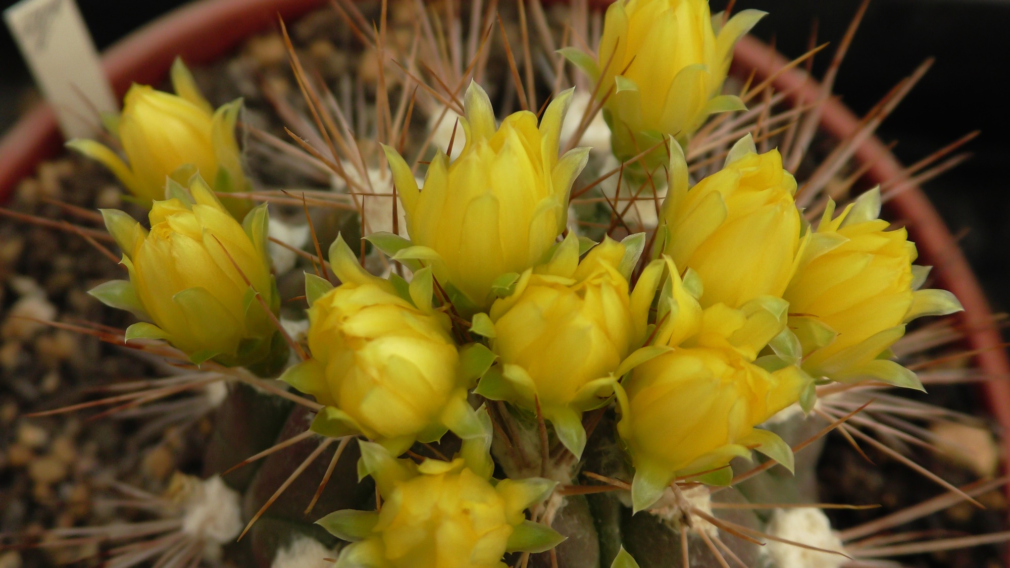 Uebelmannia flavispina blüht wieder am Heiligen Abend obwohl sie ihre Wurzeln wegen Wurzelläuse verloren hat