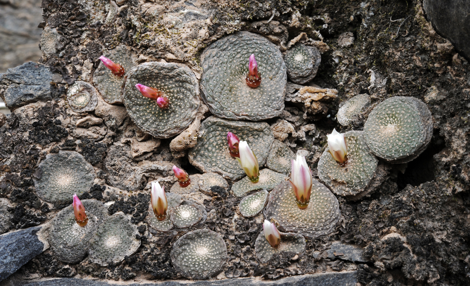 Blossfeldia liliputana - der kleinste Kaktus der Welt bewohnt die Felsen in der Ostflanke der Anden. Er hat weder Dornen noch Rippen.